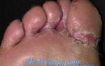 Мокрый микоз – это осложненная форма грибковой инфекции. При большом очаге грибка стопы и длительном игнорировании заболевания на месте очага появляются микротрещины, которые со временем расширяются, превращаясь в язвы и эрозии. Они длительное время не заживают, причиняют пациентам боль и неудобство, иногда больные не могут самостоятельно передвигаться от боли. Мокрый микоз появляется в местах наибольшего скопления пота – между пальцами и у их основания. Лечится он антимикотиками и подсушивающими мазями – например, цинковой. Хорошо зарекомендовали себя различные подсушивающие присыпки – например, местный антибиотик бонеоцин.