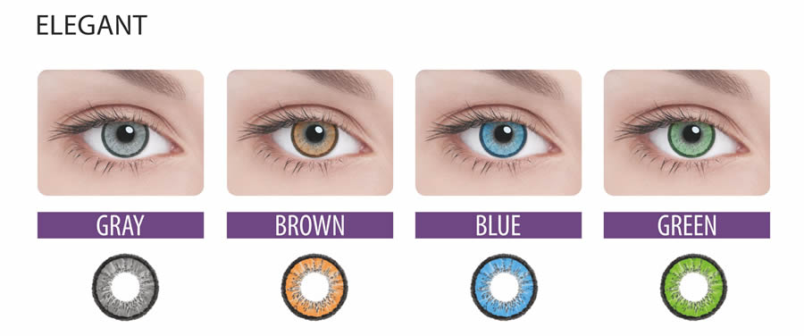 | Elegant | Линзы, визуально увеличивающие размер глаз. В палитре – 4 натуральных цвета: серый, голубой, коричневый, зеленый. |